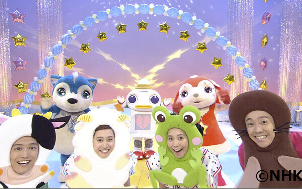 今回、DVDのタイトル名にもなっているほど人気の「おまめ戦隊ビビンビ~ン」は、2017年10月の「月の歌」として放送されると、ゆういちろうお兄さん、あつこお姉さんをはじめとする、歌のお兄さんお姉さんの4人が豆に見立てたかぶり物やコスチュームを着て戦隊ヒーローになり、コミカルに歌い踊る姿が大きな話題となりました。