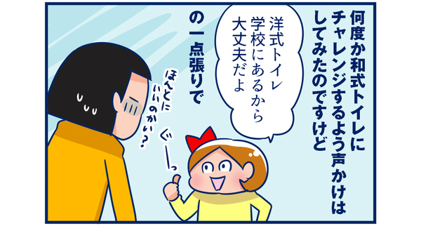 小学校でも洋式トイレはあるものの、「休み時間が短いときなど洋式トイレが混む可能性もあるから和式はできていたほうがいいよ」という情報をキャッチし、先生とも相談していたんです。