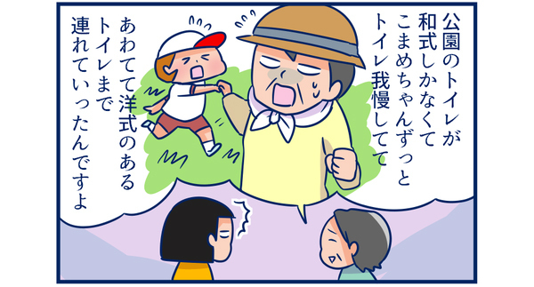 和式トイレができない子供とトイレ探しに奔走する大人! 克服のきっかけは?【双子を授かっちゃいましたヨ☆ 第58話】