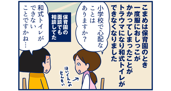 そして、この件をきっかけにこまめ自身が「和式トイレできたほうがいいな」って思ってくれたらいいのにって期待したんですけど、そもそも遠足後から面談までこの話をこまめから聞かなかったので、本人の中ではなかったことになっていたのかもしれません(汗)