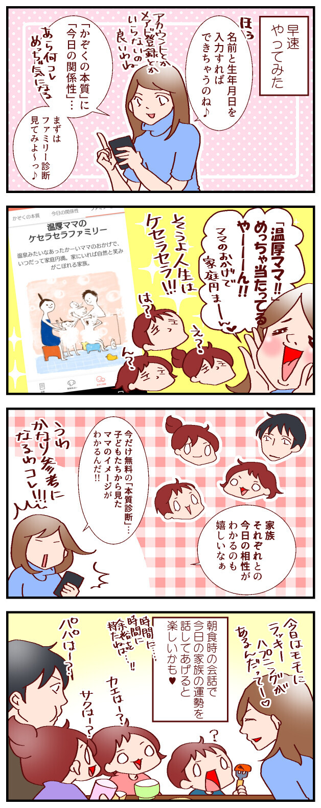 今日の家庭運、とかなら占いでよくありがちだけど、家族それぞれとの今日の相性がわかるのが嬉しい!