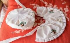 ただ、赤ちゃんに和装を着せるのは大変ですので肩の上からそっとかけたり、服装にはこだわらずに普段の服装で過ごしたりすることも多くあります。なかには、お宮参りとお食い初めを同時に行い、白いセレモニードレスなどを着せてお祝いすることも。