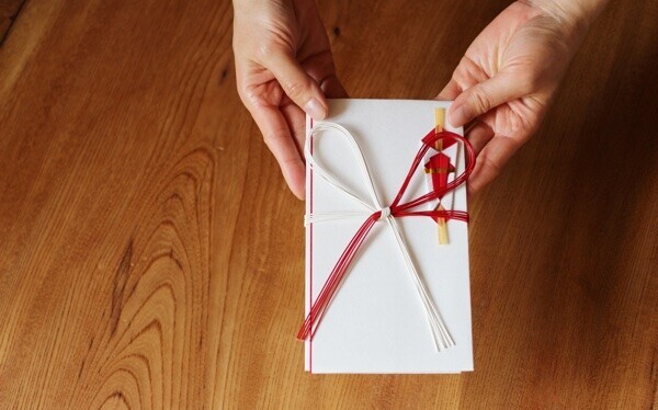 お食い初めにお呼ばれしたときには、食事代を目安にお祝いを包みましょう。お祝いを包む祝儀袋は、紅白または蝶結びの水引のものを選びます。表には“祝御食初”“御初膳御祝”などと記入するのが習わしです。