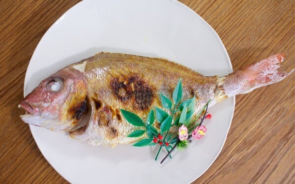 お食い初めの料理で気をつけておきたいのが、“鯛の置き方”。頭を左にし、尾が右にくるようにおきます。