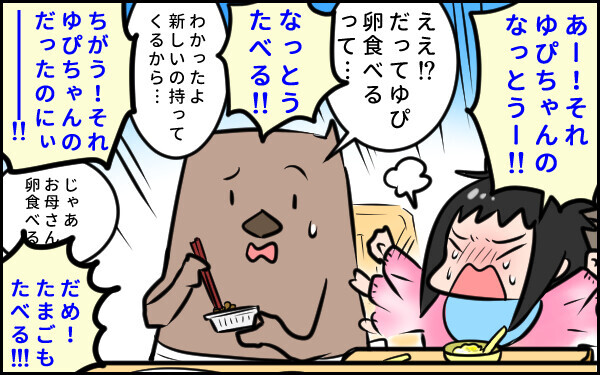 この日も自分で「卵ご飯がいい」と言ったくせに、私が納豆を食べてるのを見て食べたくなったらしく理不尽にグズり出しました。