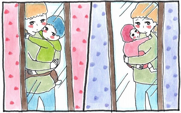 この方法で1人ずつ抱っこして鏡に映ると、「下の子はこんなに小さい、でも上の子もこんなに小さい」と、2人それぞれがまだまだ幼いことを再確認できるのでありました。