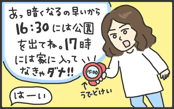 さすがに心配になったかーちゃんは公園に迎えに行きました。