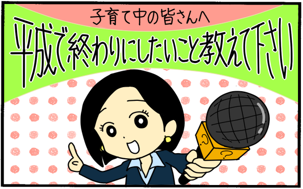 【子育て中のみなさまへ】平成で終わりにしたいこと(これからの新しい時代に期待したいこと)教えてください