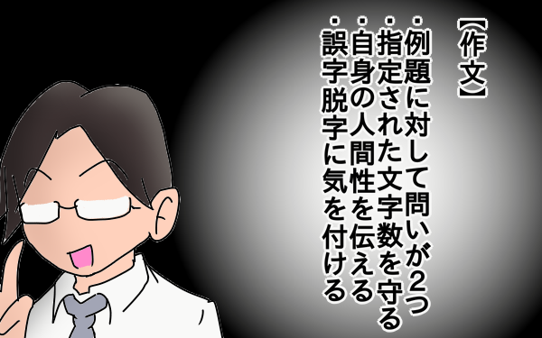 特に文字数と誤字脱字は絶対的に守らないといけない項目だと言っていました。