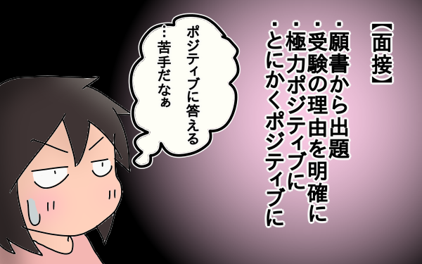 ・極力ポジティブに。面接官にこちらの将来像を伝えると共に、その将来像が志望校の理念と合致するようにきちんと整理して答えます。