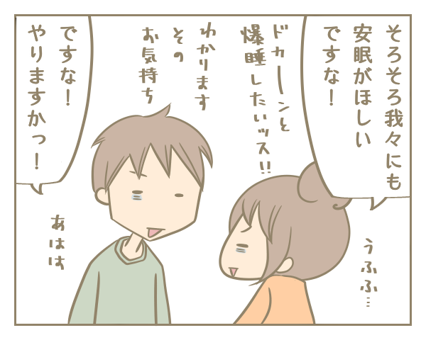 寝る前や途中で起きた時、睡眠薬代わりに乳を欲しがっていました。