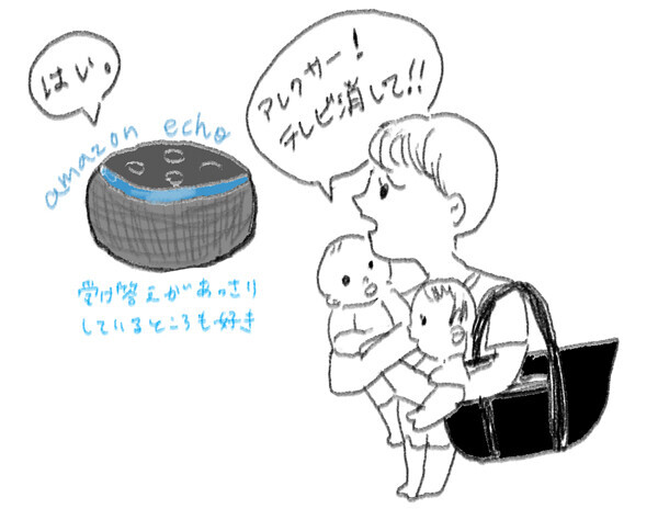 双子がセサミストリートをYoutubeで見ている隙に朝食を作り、夜はSpotifyでオルゴールの子守唄を流したり、まだまだ活用しきれてはいませんが、保育園に出発する時には双子を抱きかかえていて手が空いていないので「アレクサ、テレビ消して~!」とお願いすれば10回に7回くらいはちゃんと消してくれます。