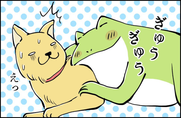 突然の子どもの侵入に、さぞや犬も驚いたことでしょう。