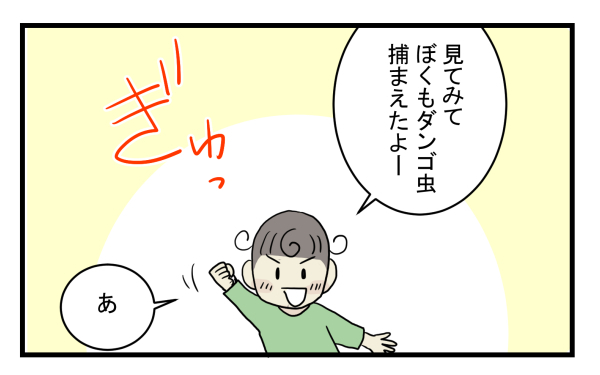 長男のマネをしてダンゴ虫を捕まえてきた次男。