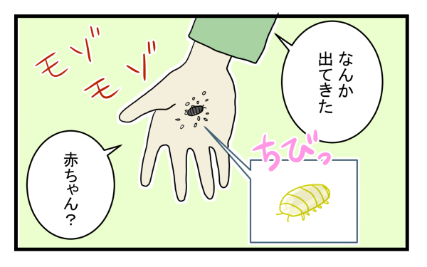 次男のダンゴ虫は卵をもっていたようで、手の中で赤ちゃんがかえってしまいました。