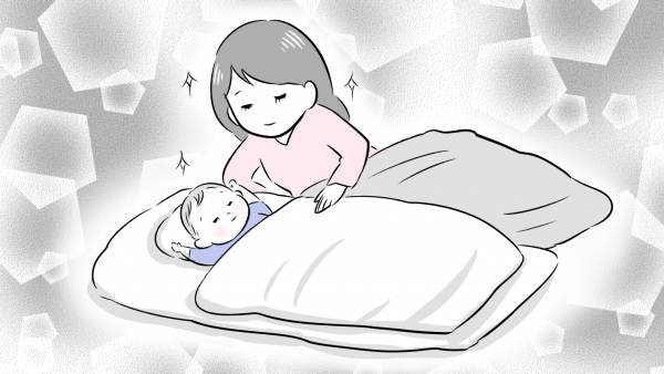 こうやって添い寝しながらポンポンしていれば勝手に寝てくれるという感じで想像していました。