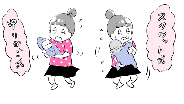 スクワットしてみたりゆりかごみたいな心地良い揺れを再現してみたり…。