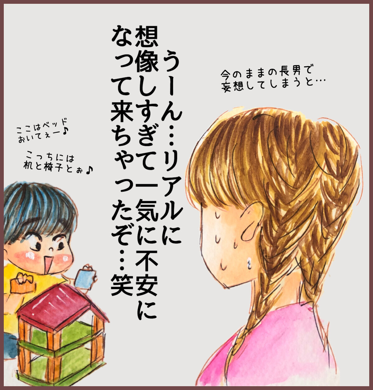 長男はどちらかというと運動が得意じゃないし、体力もない方だし…、おまけにすごく怖がり。今のメルヘンな雰囲気満載の長男のままだと、あのめちゃくちゃ体力腕力を必要とする大工さんのお仕事に果たしてついていけるのか…。