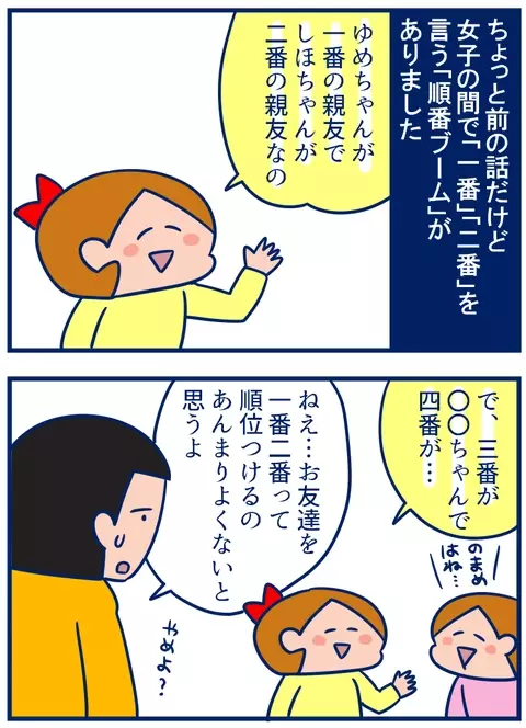 娘のクラスで起こっていた「お友達ランキングブーム」。モヤモヤしていたぐっちぃさんが、ある女の子のひと言にひどく共感したエピソードです。