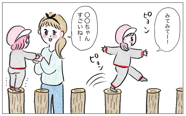 でも、以前の私だったら、他の子と比べて「できる」「できない」ばかりを気にしていて、「ちーちゃんもやってみなさい」と、無理やり手をはなしてやらせていた気がします。