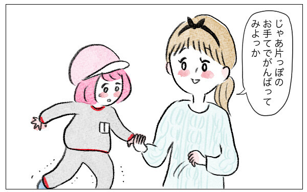 グラハム子さんの人気コミックエッセイ。今回は、公園でお友だちと一緒に「丸太渡り」をしたときのエピソードです。ひとりで先に進めるお友だちとは違って、娘は私と手をはなすのを怖がっていました…。