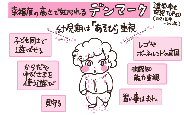 また、幸福度の高さで知られる北欧の国を中心に『大人が考える「学習」でないもののほうが、子どもにとって大きな経験である』と、早くから勉強や習い事をさせない国もあるようです。
