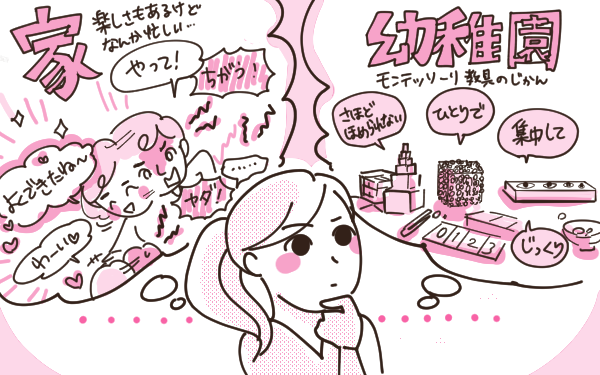 (その幼稚園は「モンテッソーリ教育」を取り入れた教育をしていて「子どもが自分で選んだ教具を使い集中して取り組む」ことを大切にしていました。)