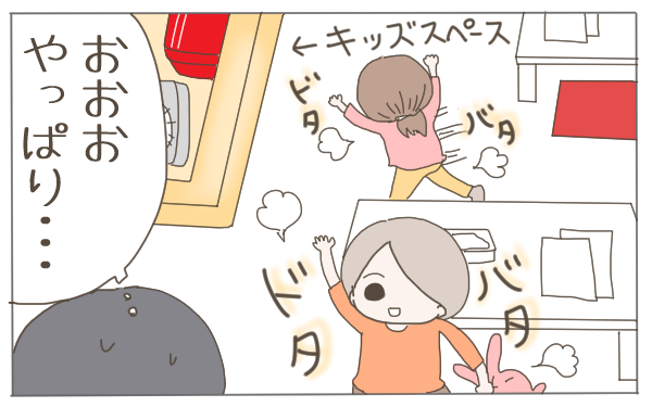 キッズスペース関係なく、喫茶スペースで走り回る子どもたち。
