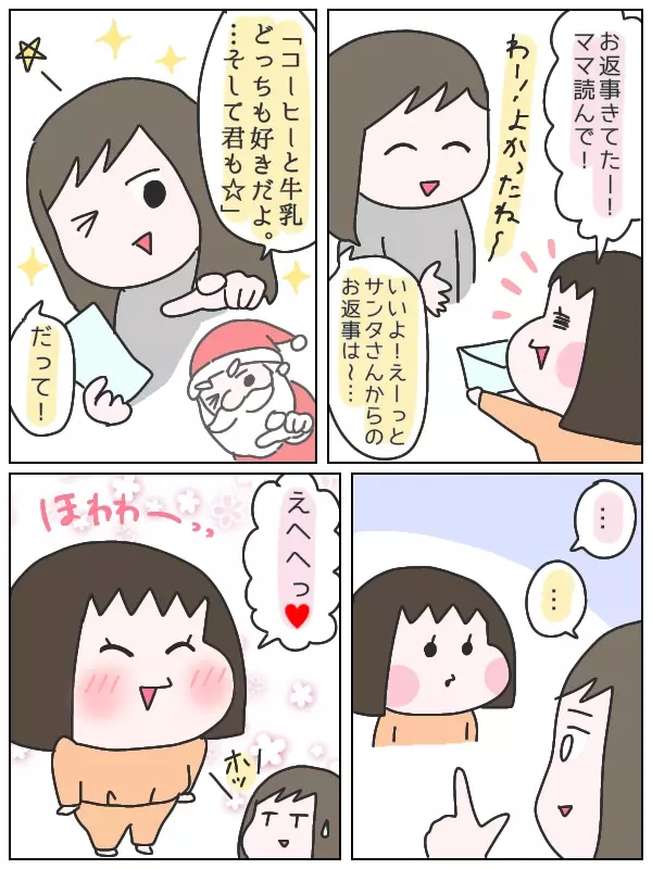 そしてクリスマスの前の夜、プレゼントと共に返事をツリーに置いておくと…