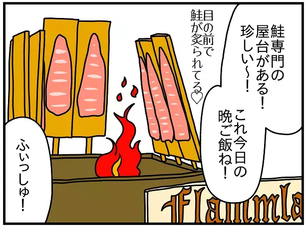 わたしたちは南ドイツに住んでいるためお魚料理はあまりしょっちゅう食べる習慣が無く、鮭の専門屋台が珍しかったので、晩ご飯に買っちゃいました!