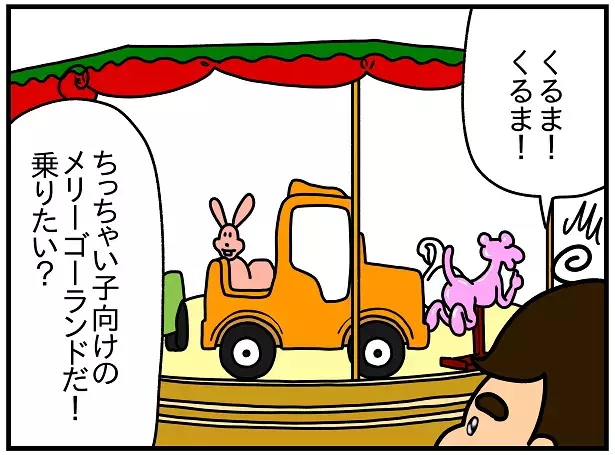 おなかもいっぱいになったところで次に見つけたのは…小さい子供用の、移動型メリーゴーランド!車が大好きなフリッツ君が反応しないわけはありません。