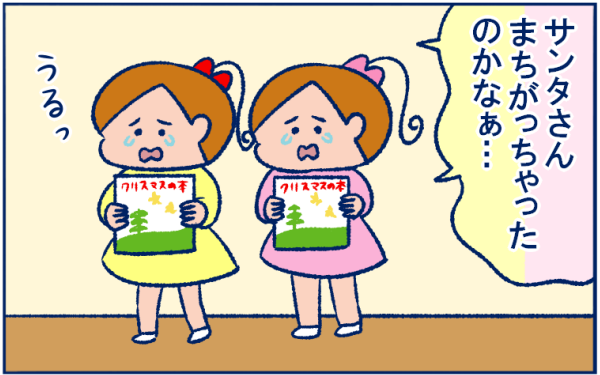 お願いと違うプレゼントに落ち込む娘たちを見て、思わず口走った「サンタの事情」とは?【双子育児まめまめ日記 第17話】
