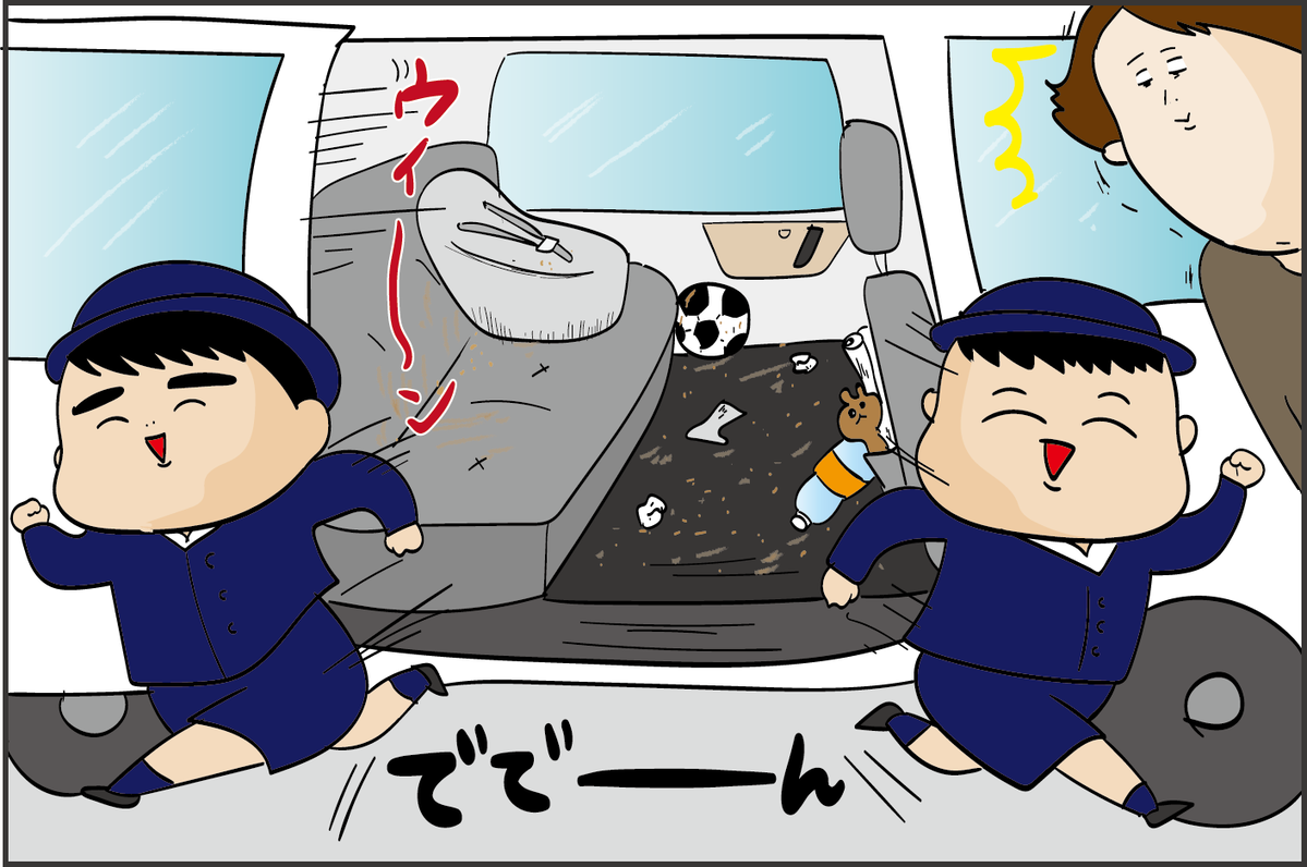 と、そのとき子ども達が後部座席のスライドドアを開けて降りてきた。