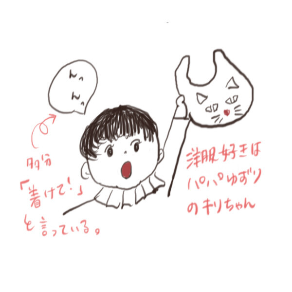 その甲斐があってか、キリちゃんは少しずつ自分の好みや、可愛いものへの興味が育ってきました。猫のスタイやピンクの花びらのようなつけ襟を、自ら「着けて~!」と持ってくるように。