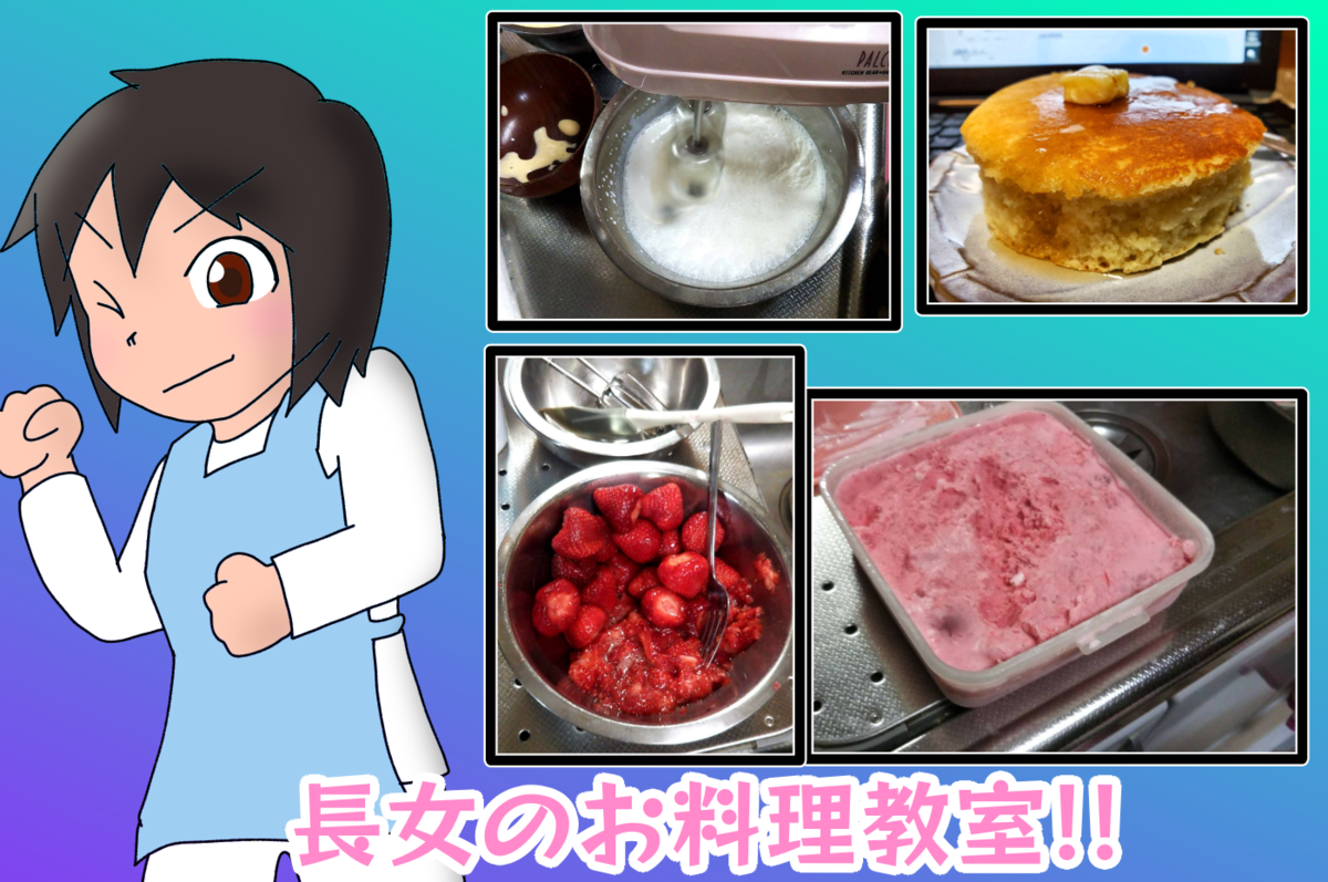 親の僕が言うのもアレですが、ホットケーキもアイスクリームも絶品でした。インターネット上にあるレシピを見ながら作ったそうですけどね、いやぁお見事です。