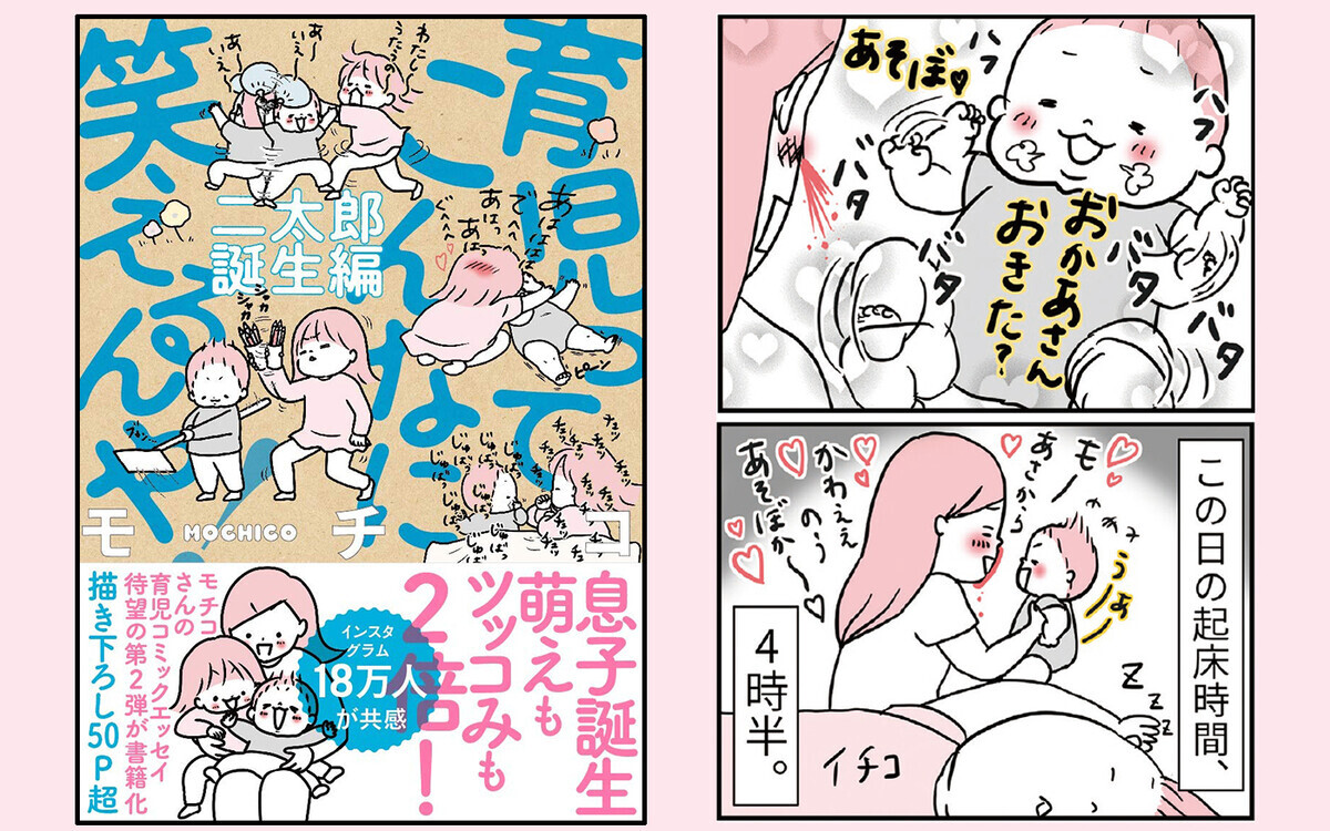 Instagramのフォロワー数が18万人を超えるモチコさんのコミックエッセイ第2弾『育児ってこんなに笑えるんや!二太郎誕生編』が発売中。
