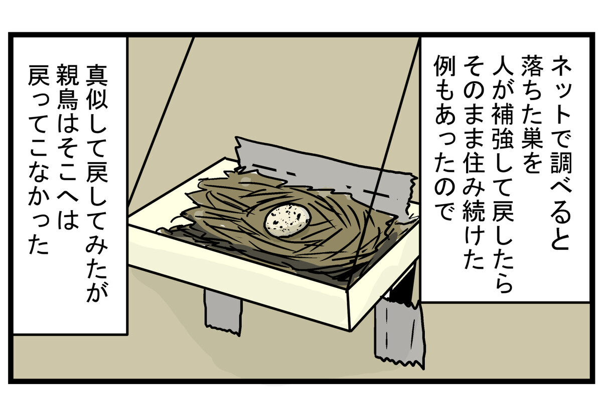 野生の生き物のことにあまり人が手出ししないほうがいいようにも思えましたが、気になったので補強して元の場所に戻してみました。