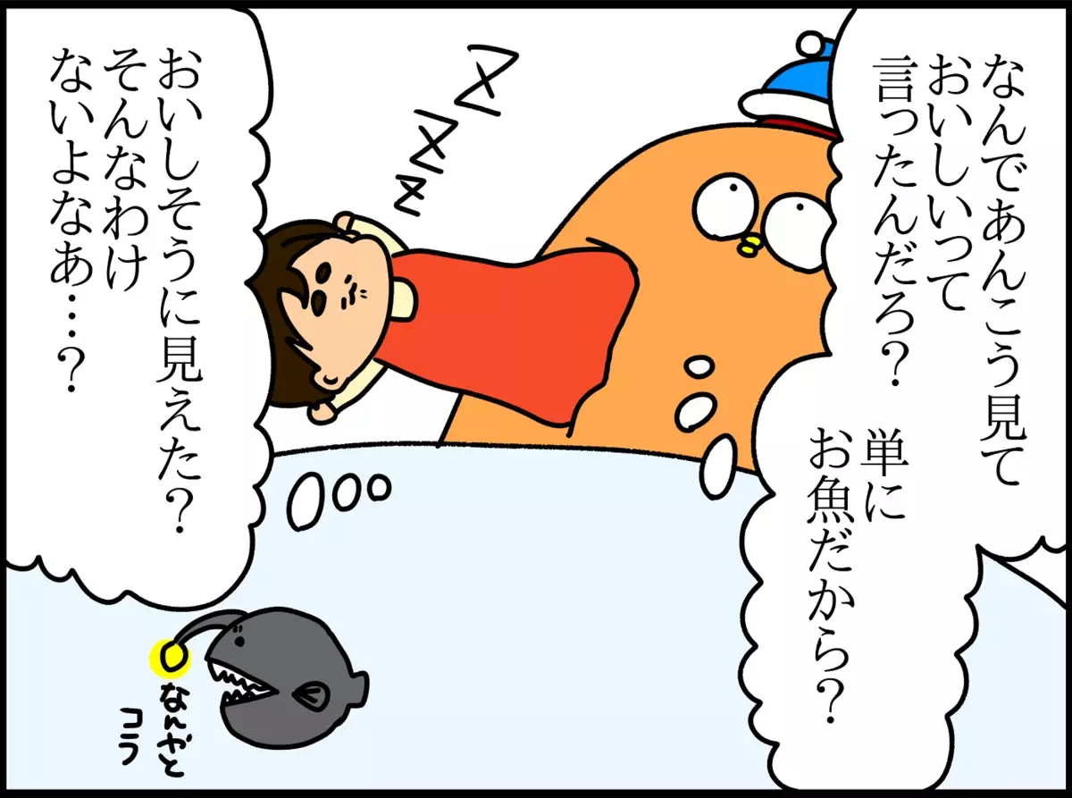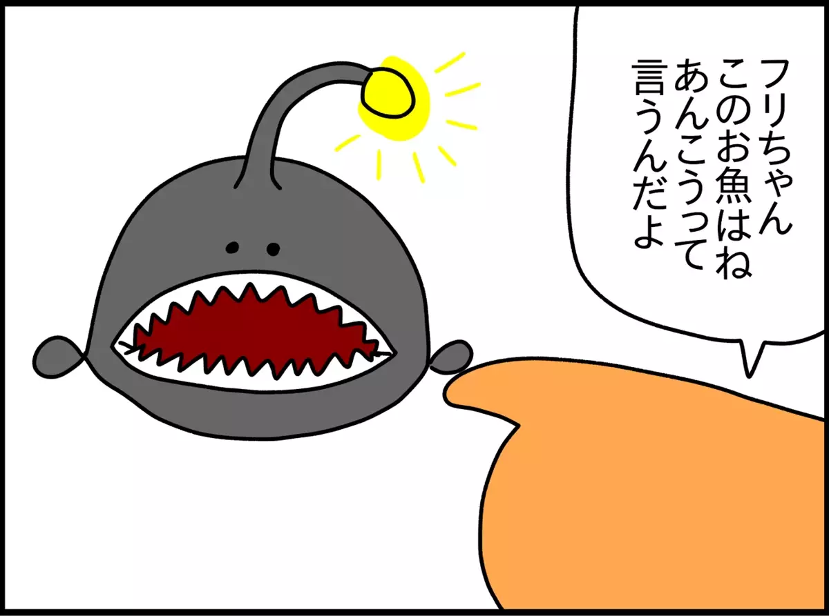 その中で「海」のページにいたのが、有名なちょうちんあんこう。フリッツ君が覚えやすいように「あんこう」とだけ教えました。すると…。