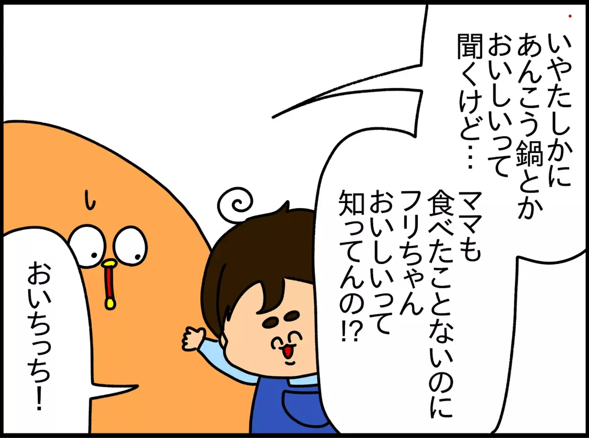 ちなみにこのあと、あんことあんこうは違うこと、あんこうはあの甘~いデザートではないことを教えてあげましたが、いまだにあんこうの写真を見ては「おいちっち!」と言っています(笑)。