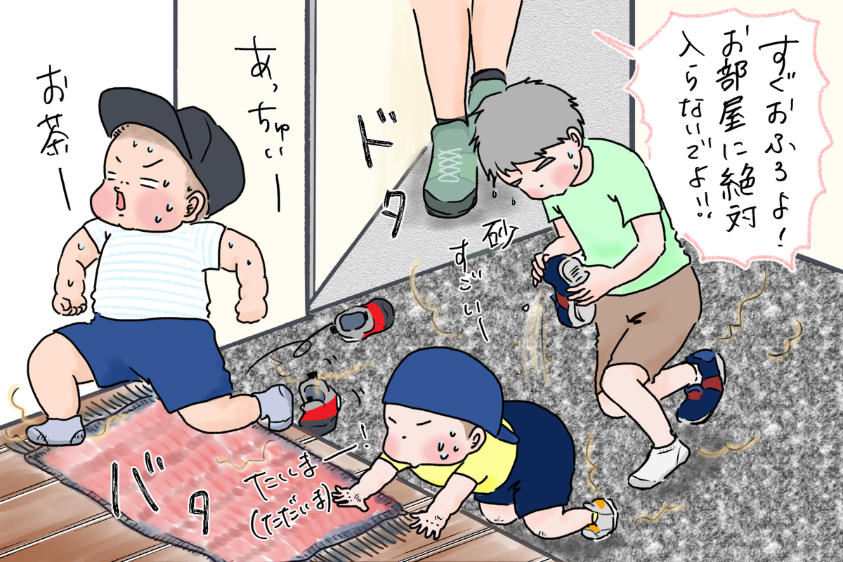 外遊び後の靴にニオイモンスター現る…tomekkoさんが退治した方法とは?【笑いあり涙あり 男子3人育児 第54話】