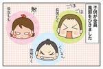 ももの足が思いっきり、次男のほっぺに。