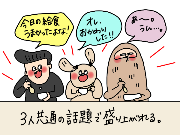 給食の話題で盛り上がったり、兄弟それぞれの先生の話題で盛り上がったりしています。