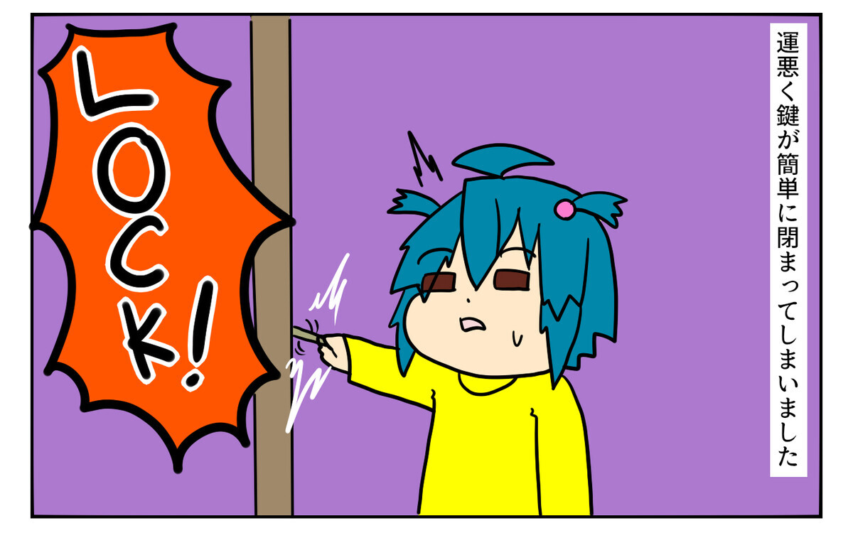 母も私に「さっきと逆に鍵を回して!」「大丈夫! できるから! 泣かないで!」などと必死に指示してくれたのですが、泣き始めると長かった私には効果がなく、どうしようもない状況でした。