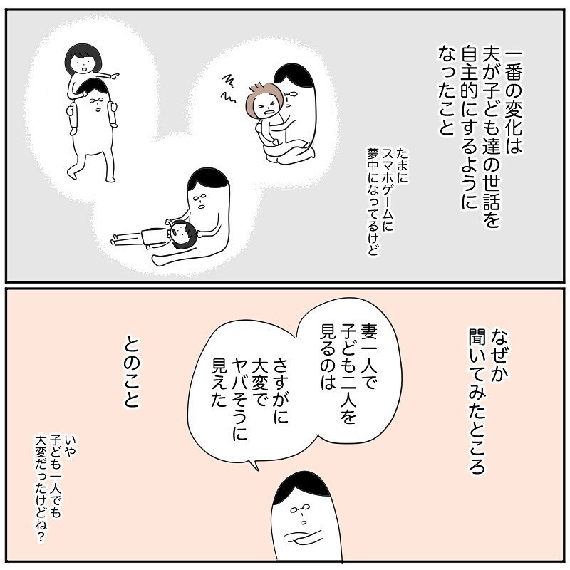 コミックエッセイ 産後クライシス 産後クライシスを乗り越え、今だからわかること【産後クライシス Vol.11】 2021年3月2日 ウーマンエキサイト 産後クライシス 目次 このお話を最初から読む ■前回のあらすじ親のことをよく見ている子ども。長女は夫に「なんでママの話は聞かないの?」と質問し…。 長女の鋭い質問にうろたえる夫 子どもは親をよく見ている ■少しずつ変わっていく夫 未だに衝突することはあるけれど… この記事もおすすめ 長女の鋭い質問にうろたえる夫 子どもは親をよく見ている 1 2 この連載の前の記事 長女の鋭い質問にうろたえる夫 子どもは親をよく見ている 最初から読む 子どもが欲しい夫vs子どもが苦手な私、「俺も育児する」って言ってたのに… ライター 雨 関連リンク 【体験レポ】美術館なのに走り回れる!?箱根で子連れ旅するなら絶対ココ | HugMug mercidays by HugMug 産後大好きな夫と久しぶりに再会、しかし思いもよらぬ展開に…! まきこんぶ 夫へのモヤモヤが続くワンオペ育児…、私限界なのかもしれない harumama 「気になるなら自分でやれば?」ワザと失敗して家事育児を逃れようとする夫に読者は「こんな旦那捨てれば?」 ウーマンエキサイト編集部 長期休みの「暇」が創造力を伸ばす——予定を詰め込みすぎない冬休みのすすめ StudyHackerこどもまなび☆ラボ この記事のキーワード 産後クライシス ワンオペ育児 夫婦の危機 雨