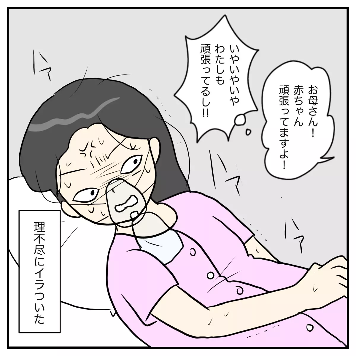陣痛が強くなり、呼吸が乱れ出したため酸素マスクを付けることに。するとある記憶が蘇り…。