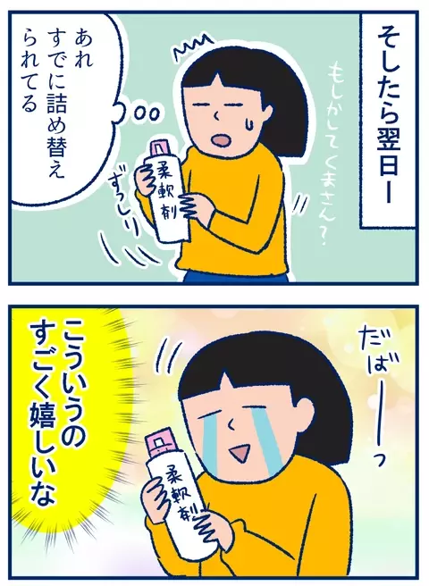 詰め替え自体は、お風呂入ったついでに入れるとか……。さほど手間ではないけど(名もなき家事ともいう?)やっぱり入れてくれると嬉しい!
