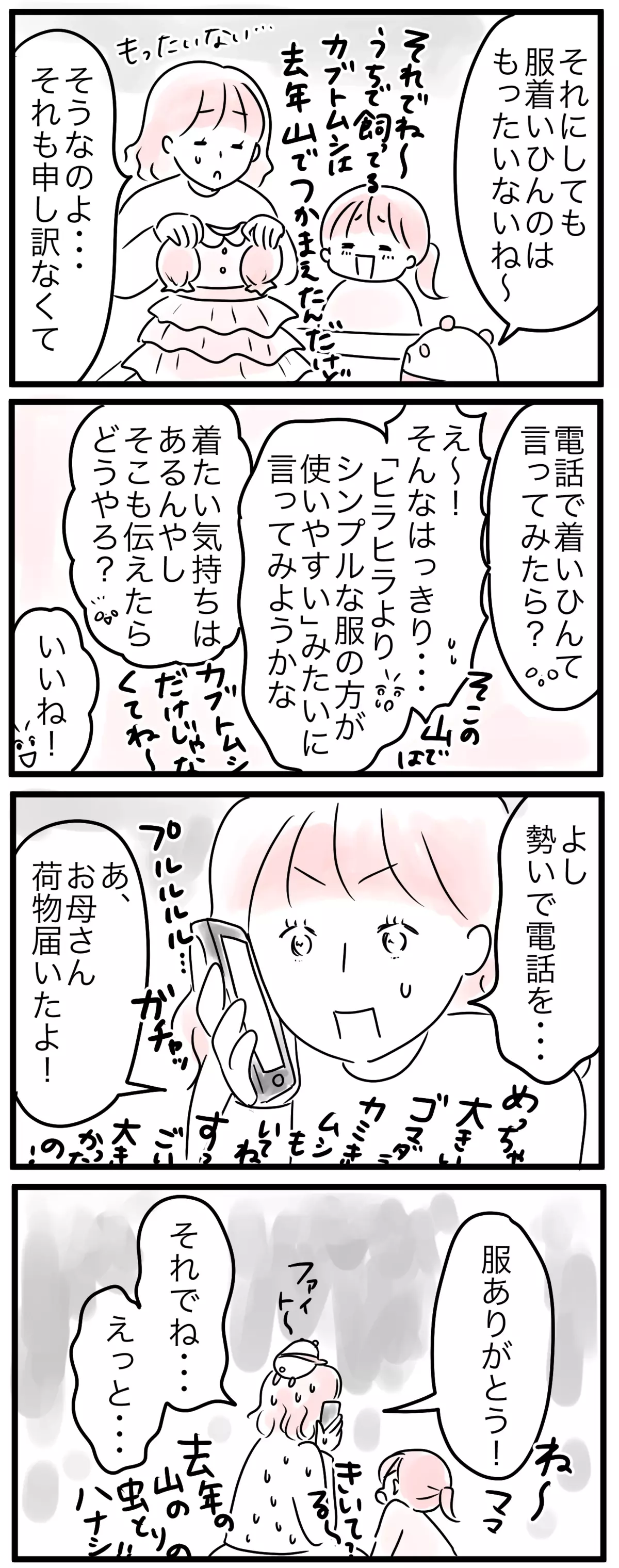 実母から届いた娘のためのヒラヒラの洋服。でもほとんど着ていない、もらった服に対してママも思うことがあって…。