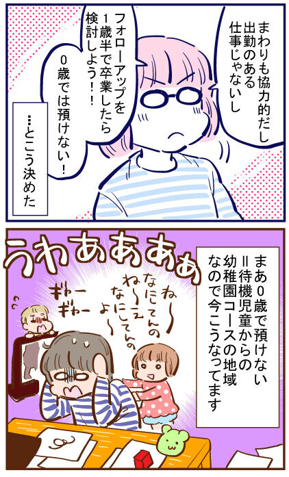 もともと0歳から保育園に預けることにためらいがありました。その理由は、周りからの影響だったり、妊娠中から保活をしないといけないことだったり、産まれてみたら意外に可愛くて傍にいたかったり…。