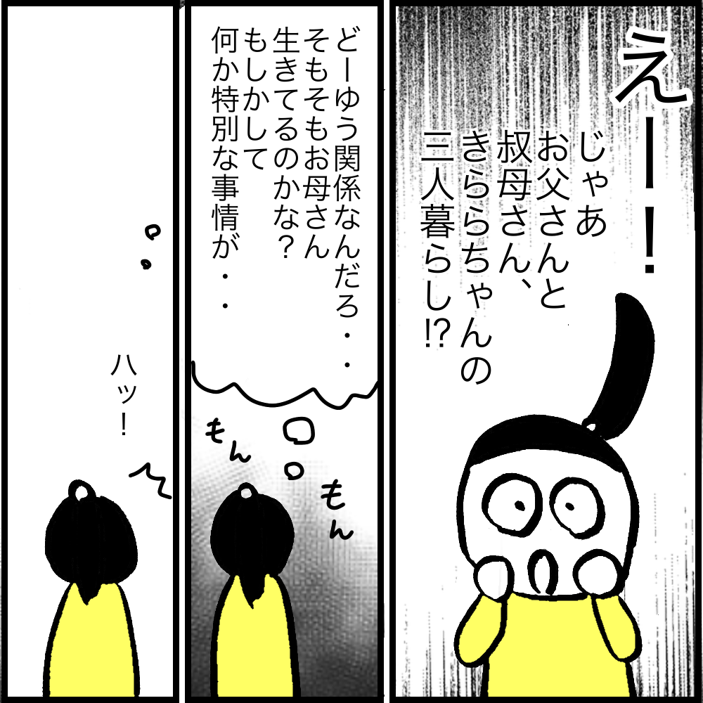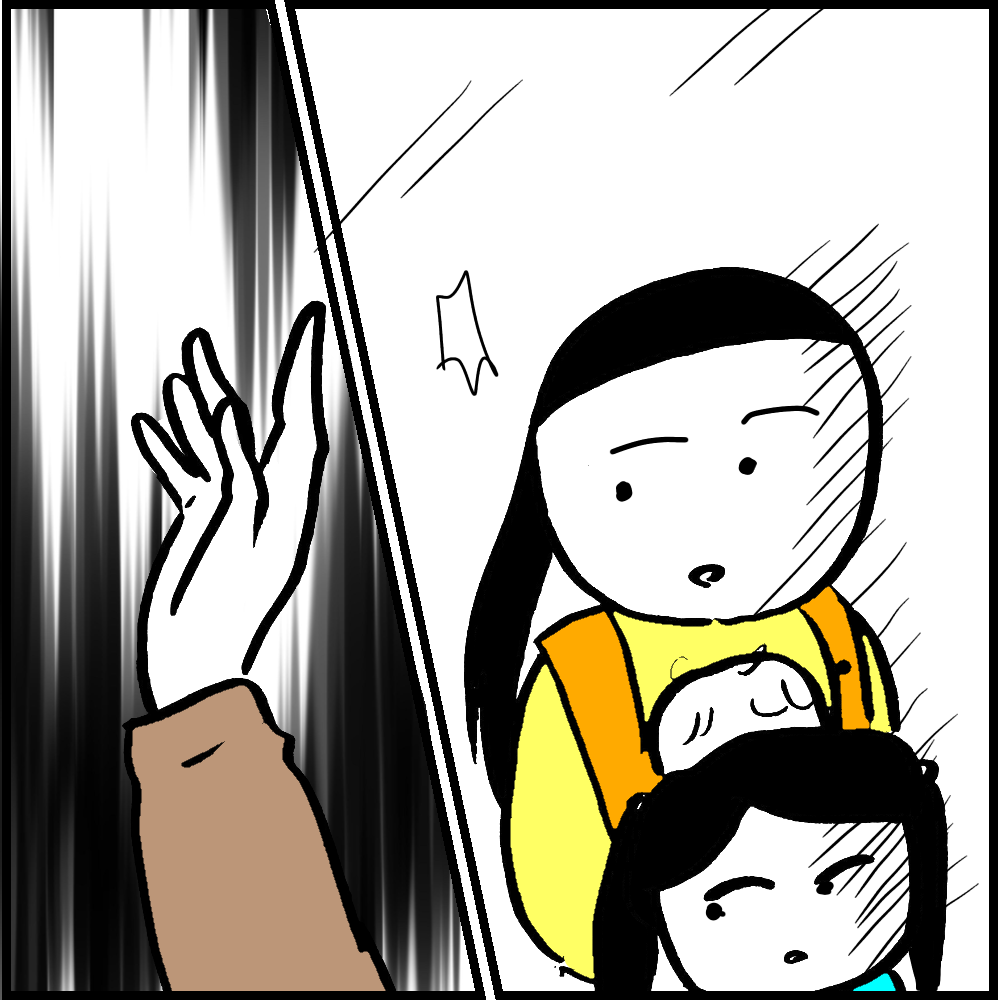 叔母さんが振り向いた瞬間、目で殺されるかと思いました…。それにしても、迎えに来た途端、急に子どもに手をあげるなんて信じられません…!