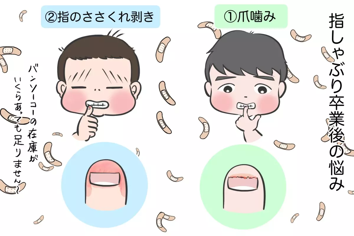 これ、不衛生だし痛々しいし、指先の細かい作業がしにくくなるしやめさせたいのですがなかなかいい方法が見つかりません。注意すると余計にやってしまうしね…。